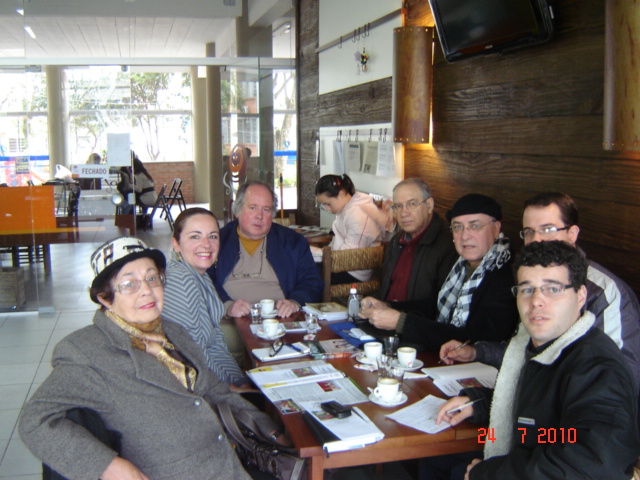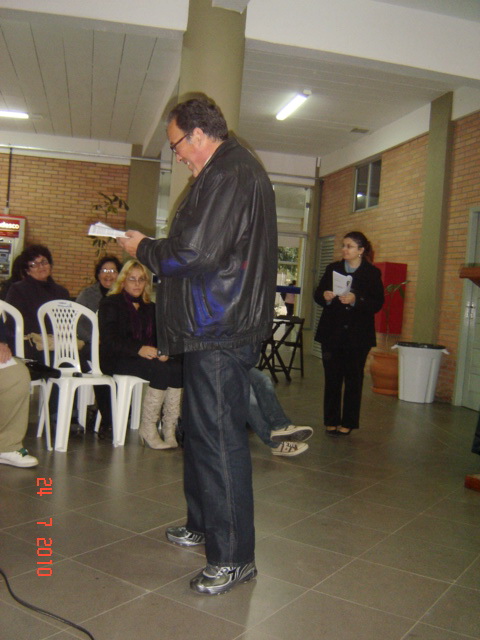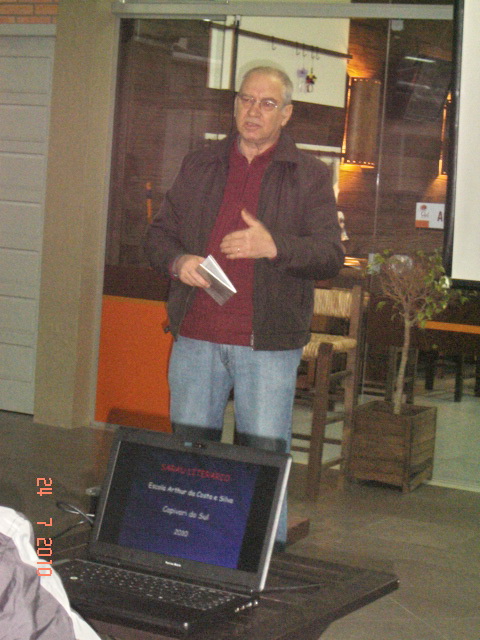 Ocorreu sábado, dia 24 de julho último, no Café Soleil, no novo prédio da FACOS/CNEC, em Osório, o evento da AELN em comemoração ao Dia do Escritor. Participando do Sarau Literário estiveram os escritores Delalves Costa (Osório), Mário Feijó (Capão da Canoa), Titi Martins (Palmares do Sul), Jorge Fernandes (Capão da Canoa), Leda Saraiva Soares (Tramandaí), Evanise Bossle (Imbé), Ulda Mello (Tramandaí), Sérgio Agra (Capão da Canoa), Solange Barbosa (Tramandaí), Joelson Machado (Sto. Antônio da Patrulha), Rosalva Rocha (Sto. Antônio da Patrulha), Rodrigo Trespach (Osório), Rubens Moraes Lace (Capão da Canoa), Suely Braga (Osório), Cleto Durlo (Osório) e Artur Pereia dos Santos (Capão da Canoa).