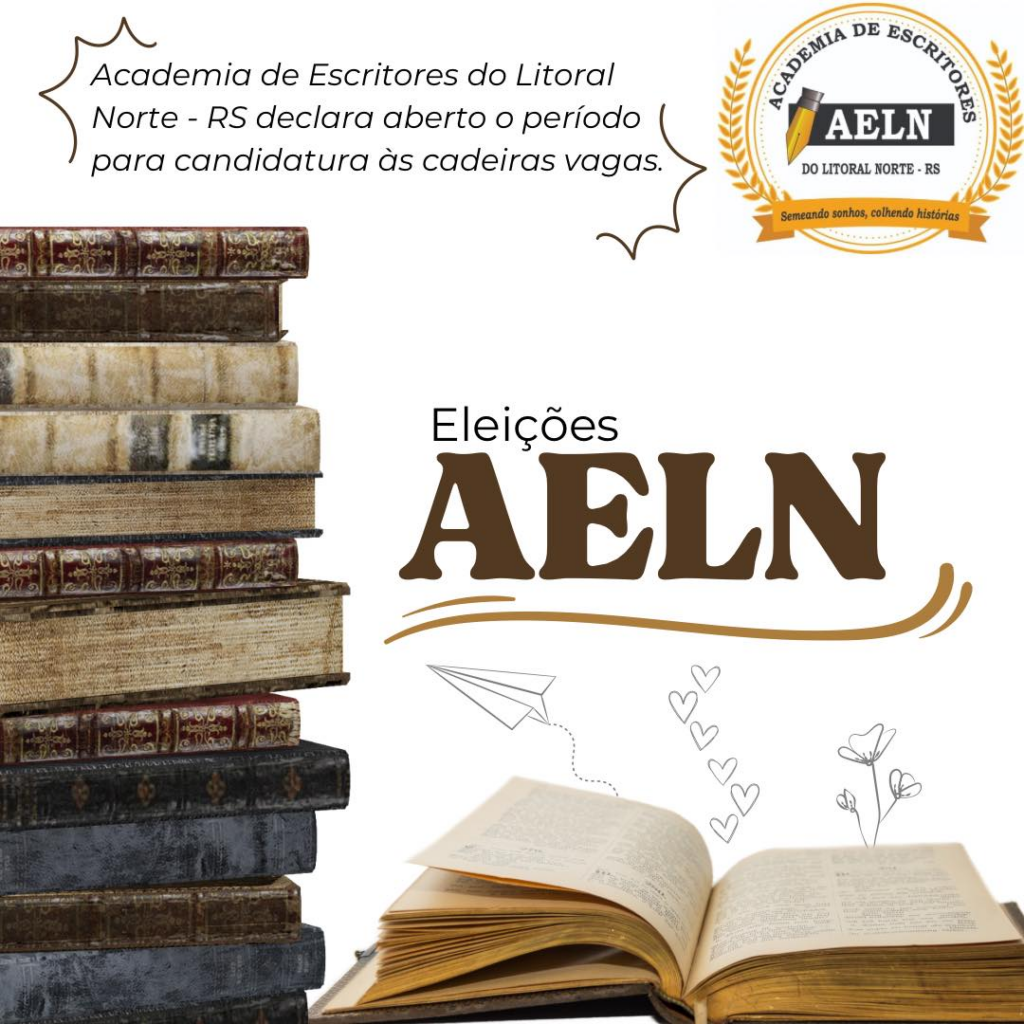 A Academia de Escritores do Litoral Norte – RS, trimestralmente, abre inscrições para que escritores e escritoras possam se candidatar a ocupar uma cadeira na AELN-RS.