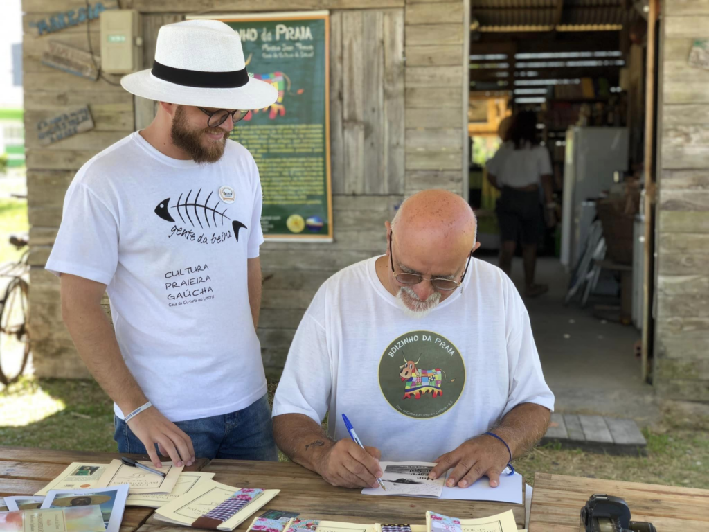No último sábado (11), na praia da Cidreira, a PalavrAreia, editora popular da Casa de Cultura do Litoral, fez o lançamento de três livros: Crônicas Para O Meu Pai, volumes I e II, da escritora Cidreirense Helena Webber, e Mar Negro do Sul, do Acadêmico Ivan Therra.