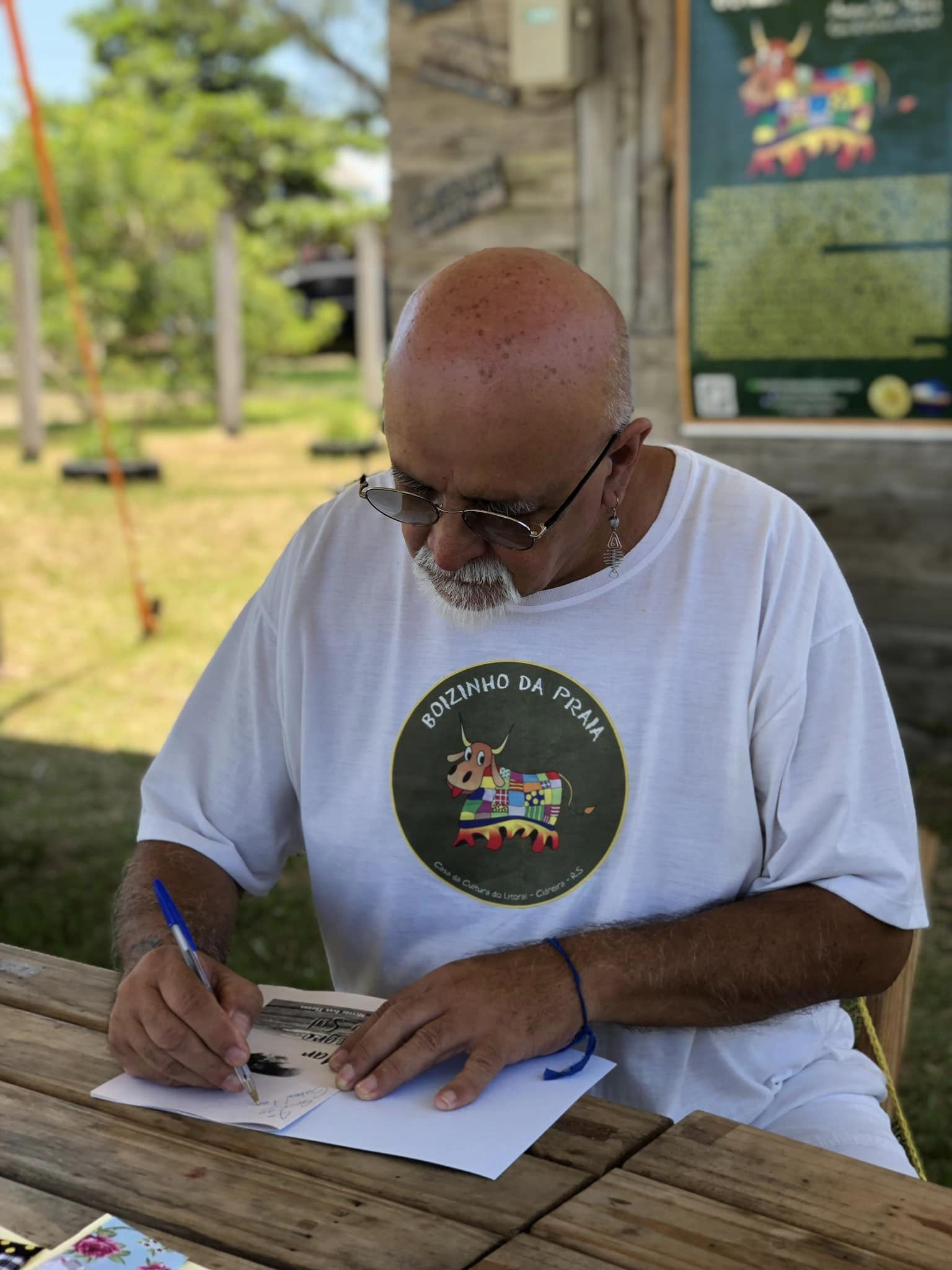 O Acadêmico Ivan Therra autografa “Mar Negro do Sul”.